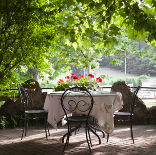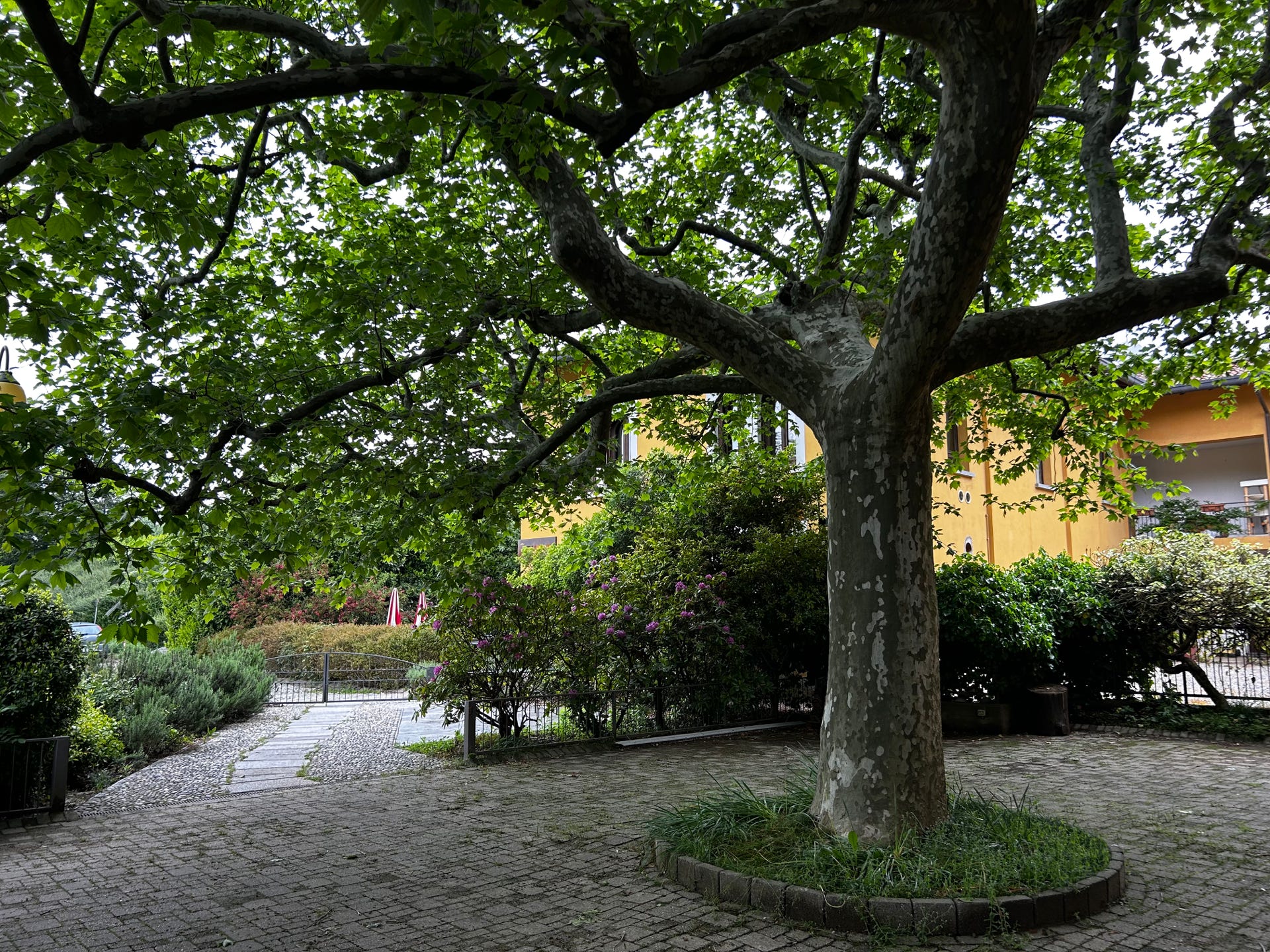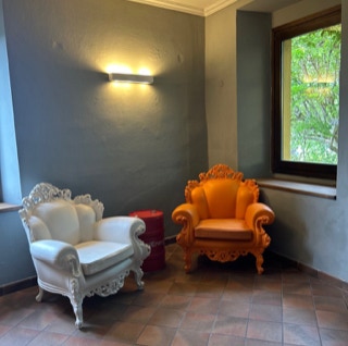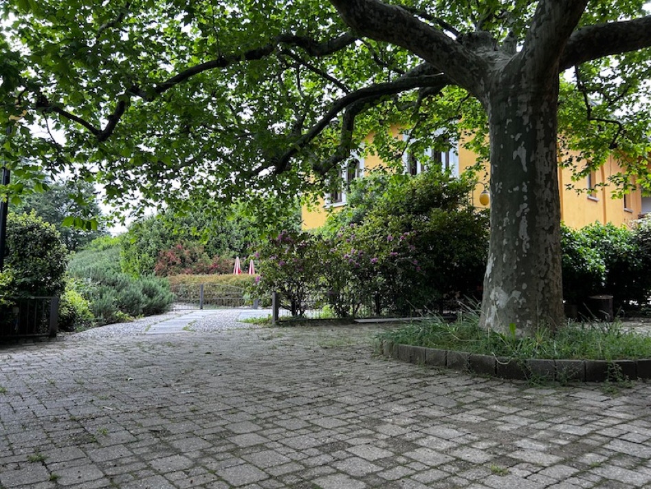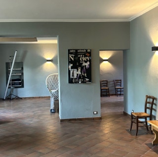 Gli ambienti si aprono su un ampio piazzale privato con giardino, tavolini e area bar: uno spazio di relazione informale, pensato per prolungare l’incontro oltre l’evento, favorire la conversazione e lasciare che le connessioni continuino a vivere.